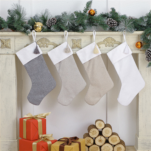 Christmas Linen Tassel Decoration Hanging Stocking Vinyl Sublimation For Family Holiday