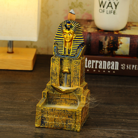 Golden Egyptian Pharaoh Head Backflow Incense Burner Retro Synthetic Resin Censer Crafts Ornament Home Buddha Statue Furnishing