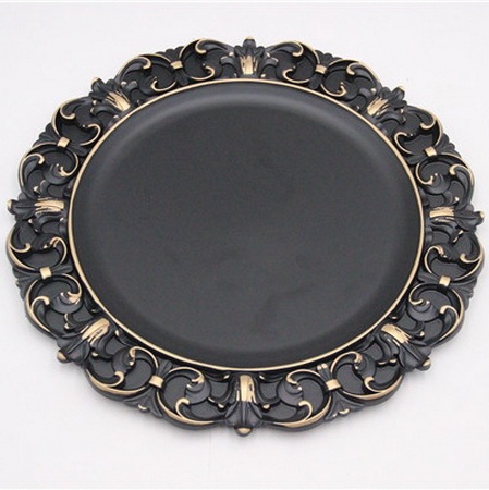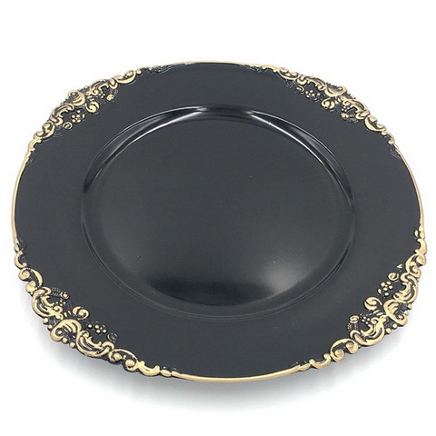 W7011 11 אינץ סיטונאי מסעדה לשימוש חוזר עגול שחור מותאם אישית הדפסת ארוחת ערב פלסטיק 100% מלמין צלחת אוכל סטים