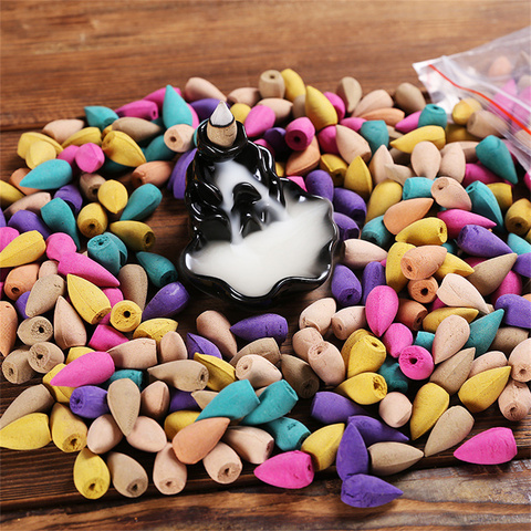 50ชิ้น/กล่องขนาดใหญ่ธรรมชาติไหลย้อนกลับธูปกรวย10กลิ่นดอกมะลิลาเวนเดอร์ไม้จันทน์ชาเขียวกุหลาบสีควัน