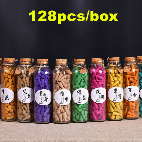 128ชิ้นขวดแก้วรสชาติแพคเกจสามารถเลือกธรรมชาติควันไหลย้อนกลับกรวยกลวงกรวยธูปไม้จันทน์