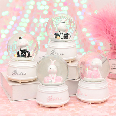 Globes de neige en boule de cristal, résine créative, dessin animé pour filles, cadeau beauté nordique, boîte à musique, décoration artisanale de bureau, pour maison