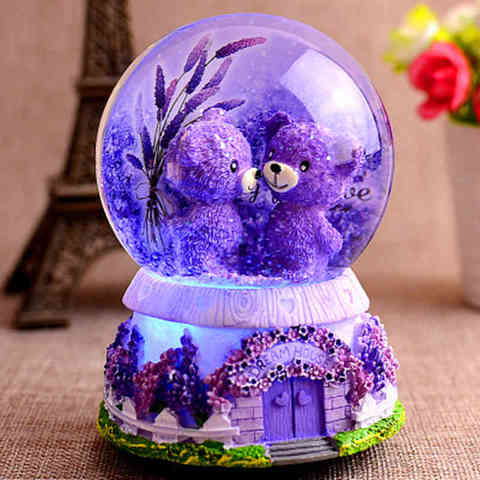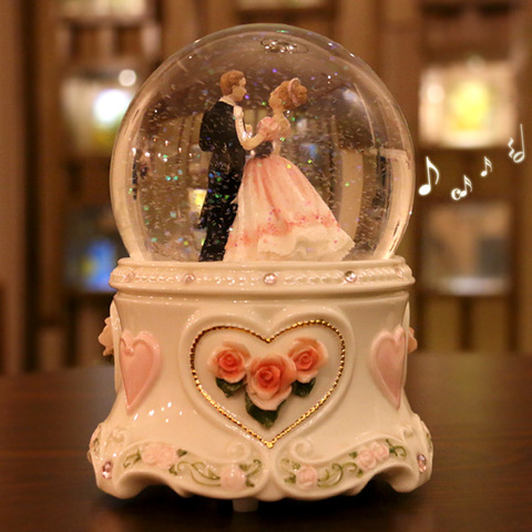 Couple boule de cristal flocon de neige Anime Figurines amour boule à neige boîte à musique décor à la maison cadeaux Musical décoration de noël
