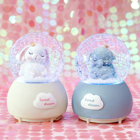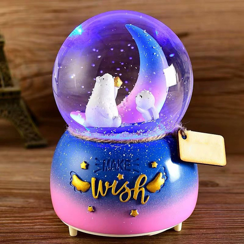 Boîte à musique en forme d'animaux de dessin animé, dégradé de lune, ours étoilé, lapin, Globe de neige, décoration de bureau, cadeau du nouvel an pour étudiants, 2020
