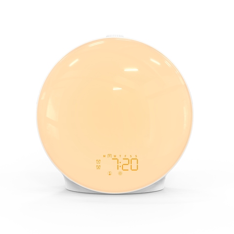 2023 Neues Weck licht G-förmige Atmosphäre LED-Nachtlicht BT-Lautsprecher Musik lampe Sunrise Wake Up Clock mit kabelloser Aufladung