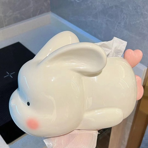 Caja de pañuelos de conejo bonita de lujo ligera, caja de servilletas de gama alta para sala de estar, mesa de centro creativa de cerámica, adornos, caja de papel