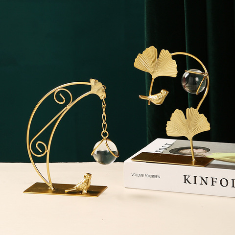Nordic iron ball home soggiorno camera modello soft bird gingko decorazione in cristallo