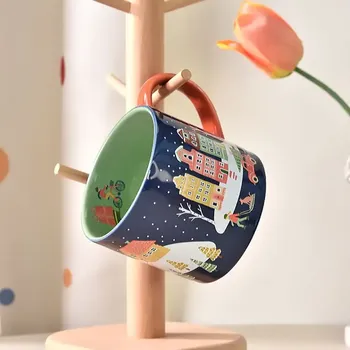 Cốc gốm chịu nhiệt độ cao 400ml hoạt hình sáng tạo đêm Tuyết giáng sinh có tay cầm Cốc văn phòng công suất lớn